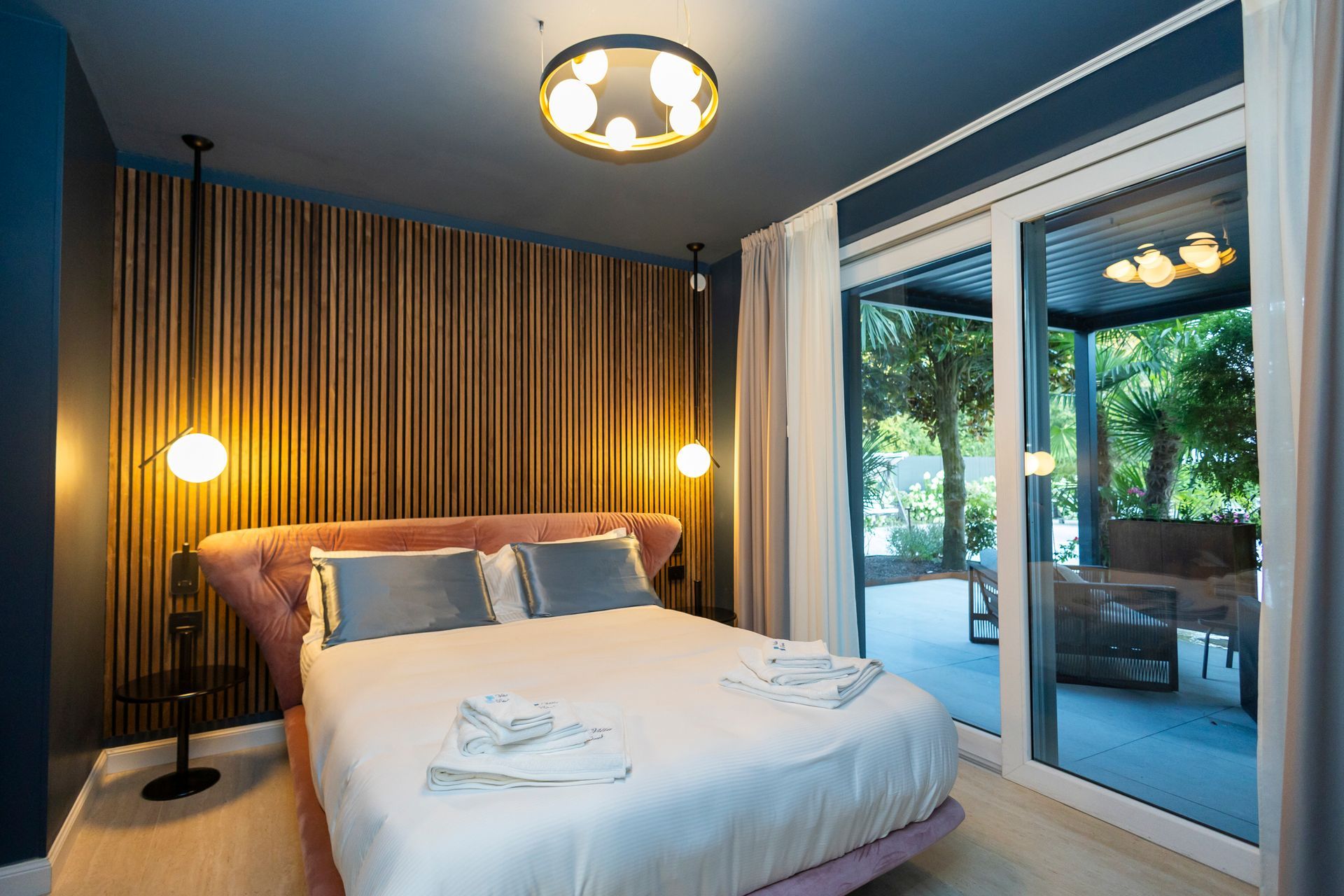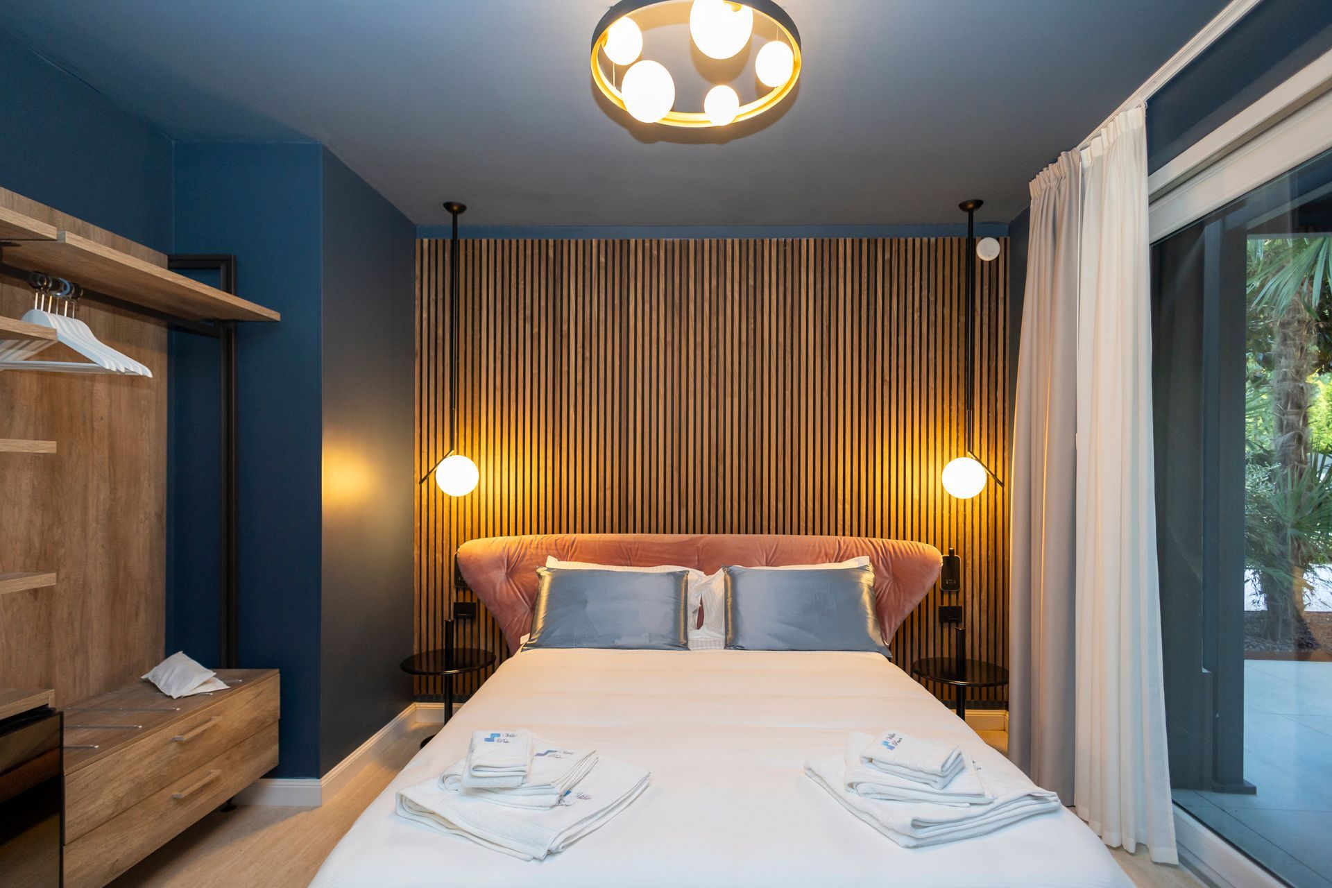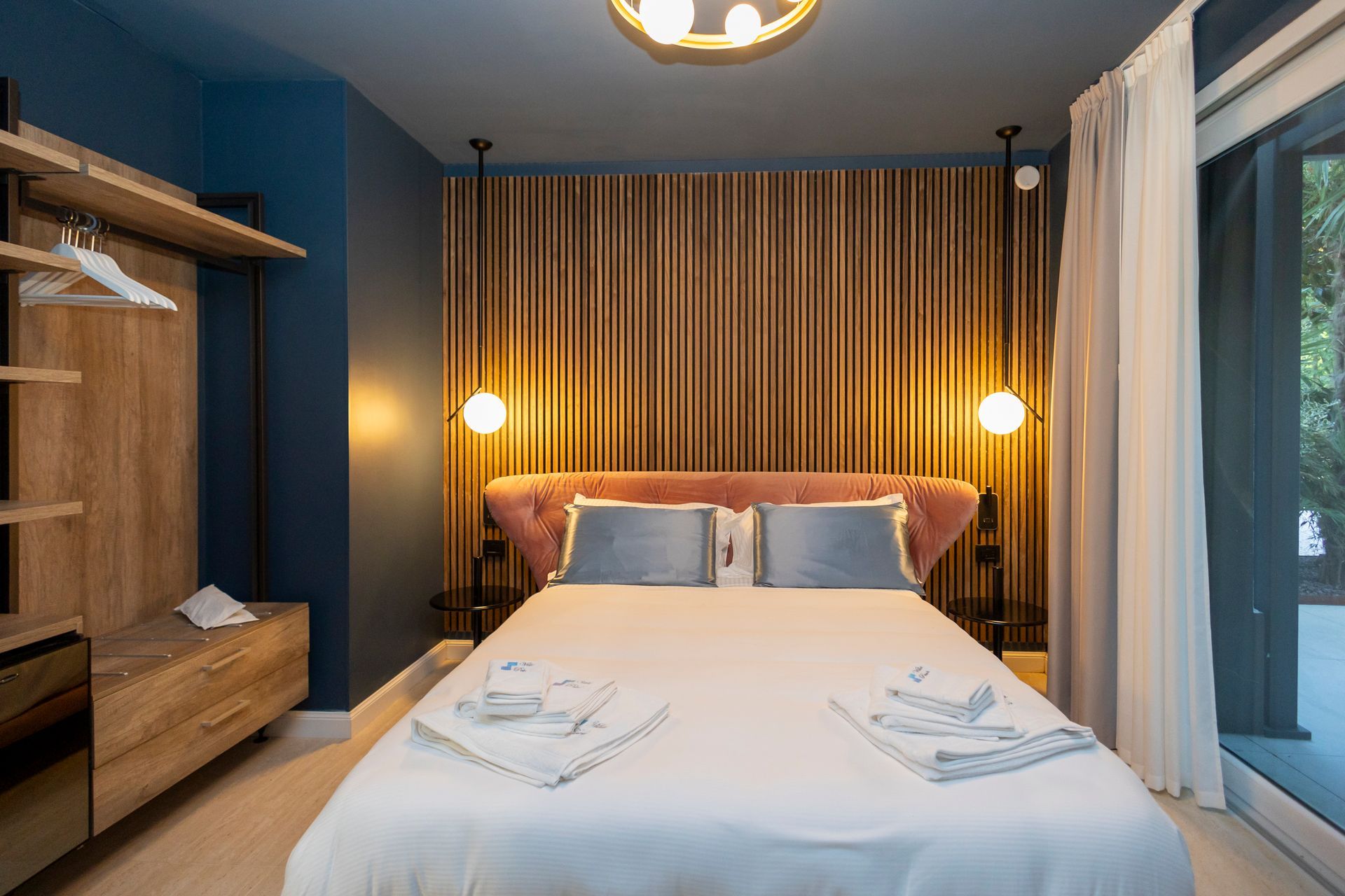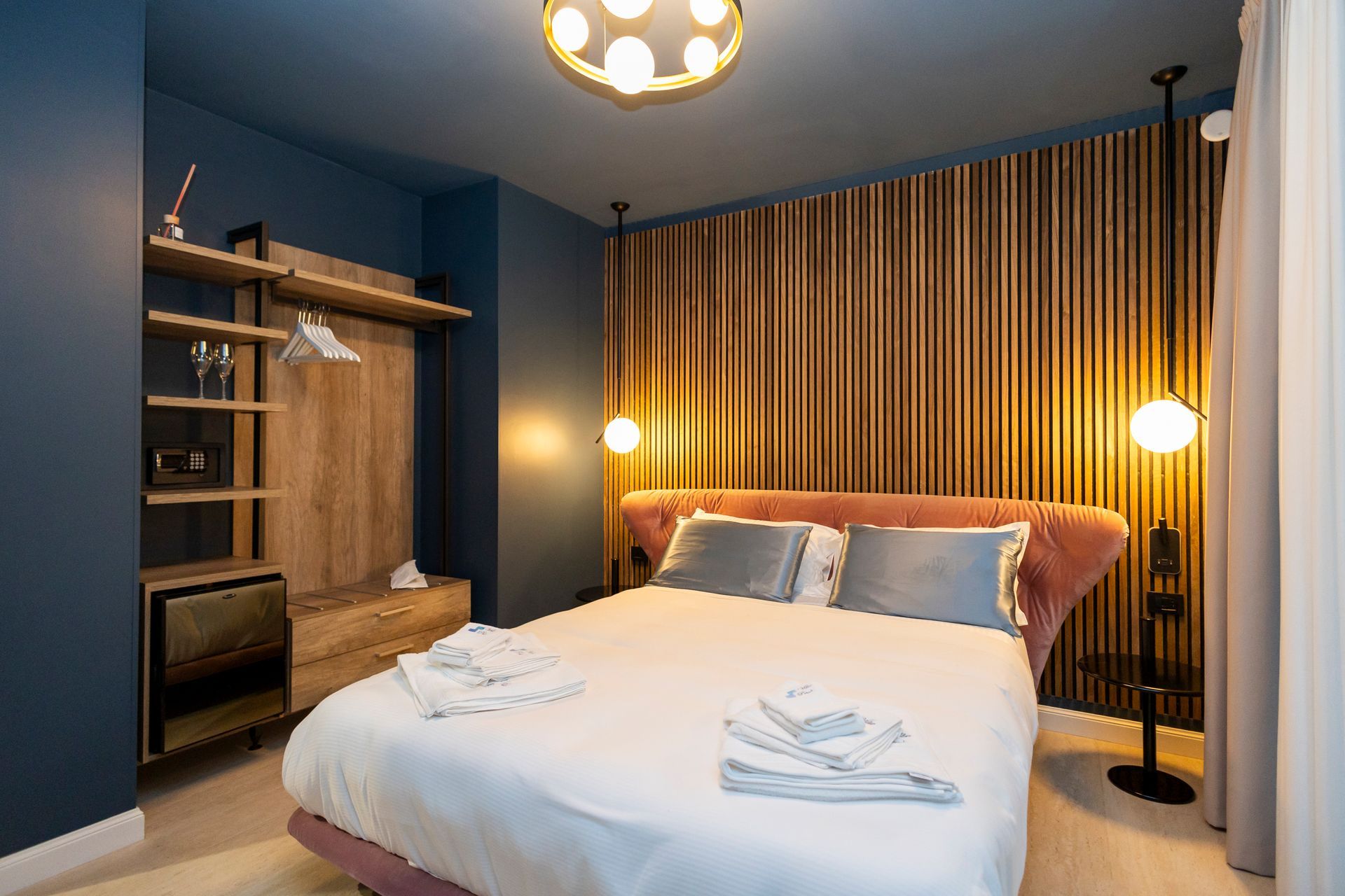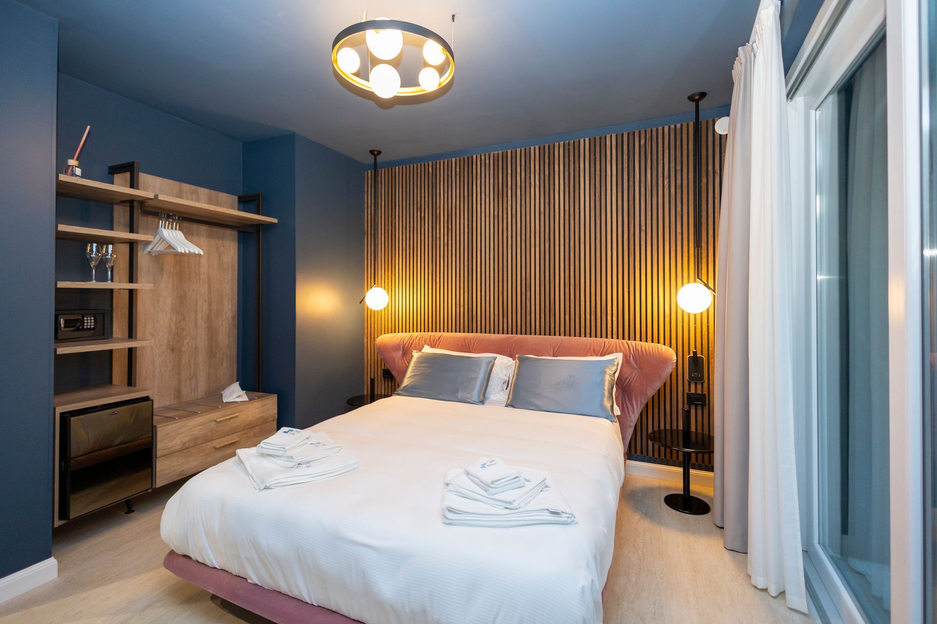 Con i suoi 36 mq di charme moderno, la Camera Bonaldo è un inno al design audace e alle forme contemporanee. Il protagonista assoluto è il letto rosa dalla forma avvolgente Bonaldo, affiancato da comodini coordinati e da una sedia da scrivania che unisce stile e funzionalità. Le tonalità vibranti e i dettagli studiati donano all’ambiente un’energia dinamica, perfetta per ospiti che vogliono sentirsi ispirati anche lontano da casa.