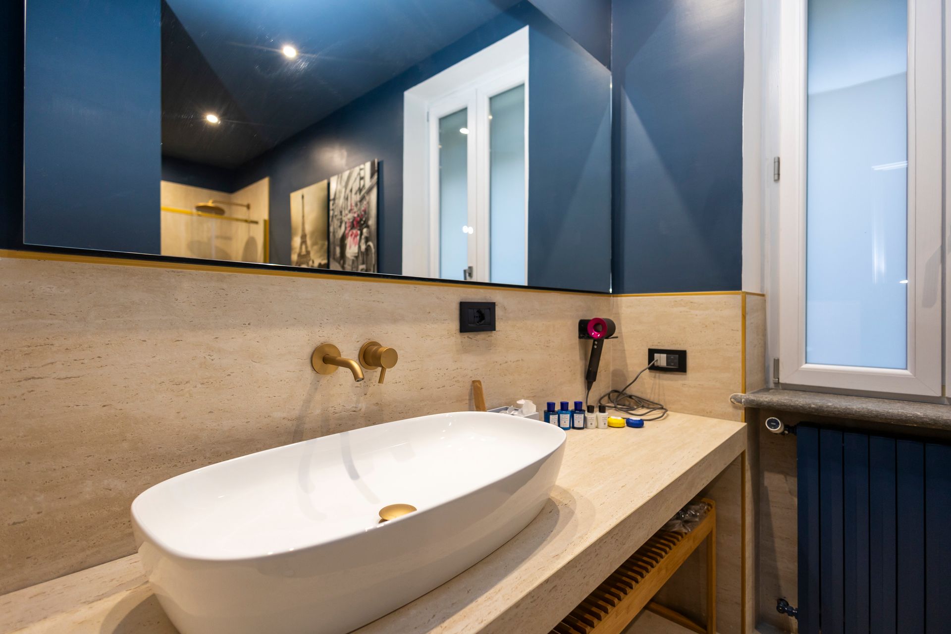 Ogni elemento è pensato per garantire comfort e praticità: l’illuminazione Flos esalta i volumi e i colori, mentre in bagno una selezione esclusiva di prodotti di cortesia Acqua di Parma – shampoo, balsamo, saponette, latte e crema corpo – offre un rituale di benessere raffinato. La dotazione della camera comprende asciugacapelli Dyson, cassaforte, frigobar e una TV da 52 pollici con Wi-Fi dotata di sistema “Program Hotel”, che azzera automaticamente la cronologia ogni 24 ore per garantire massima privacy.